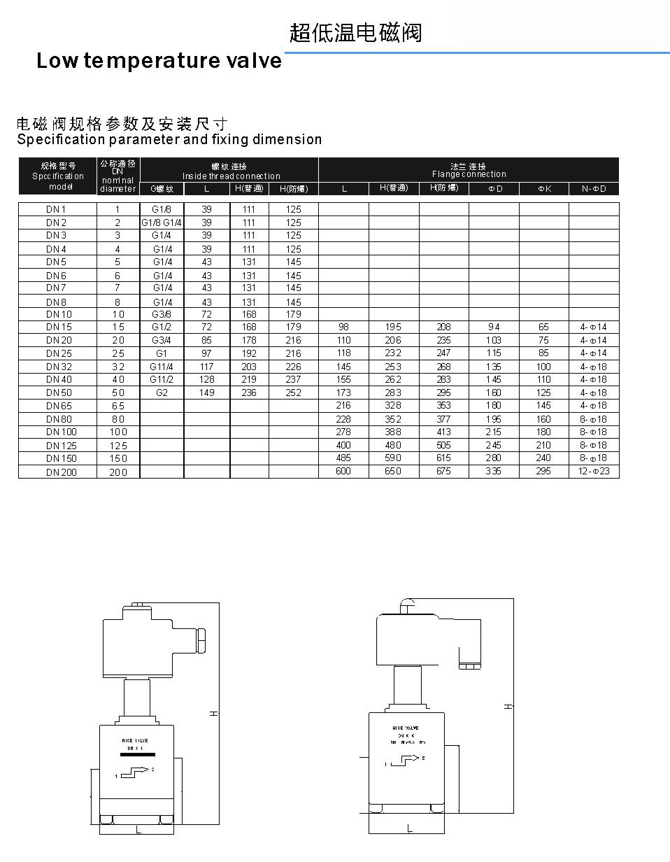 進口超低溫電磁閥通常采用加長桿設計,適用于介質溫度在-40℃~ -196℃的工況,一般為液氦、液氫、液化天然氣以及空氣分離等低溫系統,使用介質為液氦、液氫、液化天然氣、液氮、液氧等低溫流體